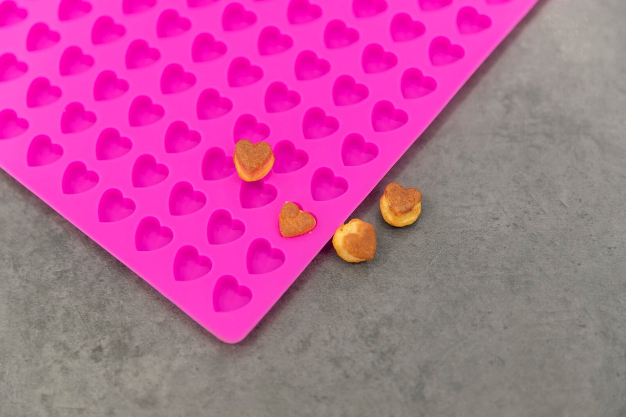 Vill du göra dina egna godbitar till din hund eller katt? Med Trixies bakmatta i silikon kan du enkelt skapa läckra godsaker i en söt hjärtform och låta fantasin flöda. Fyll smeten i bakformen, skjutsa sedan in den i ugnen eller mikron.