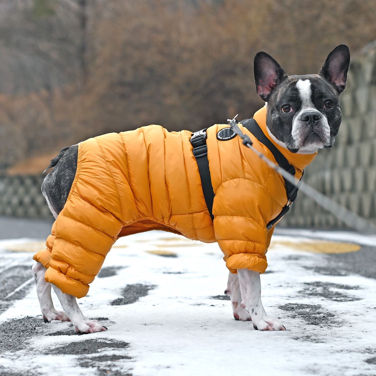 Handgjord ultralätt overall för höst och vinterbruk. Ultra Light Jumpsuit A ger optimalt skydd i kallt och blåsigt väder. Overallen är fodrad med mjuk bomull och håller hunden varm under hela promenaden.
