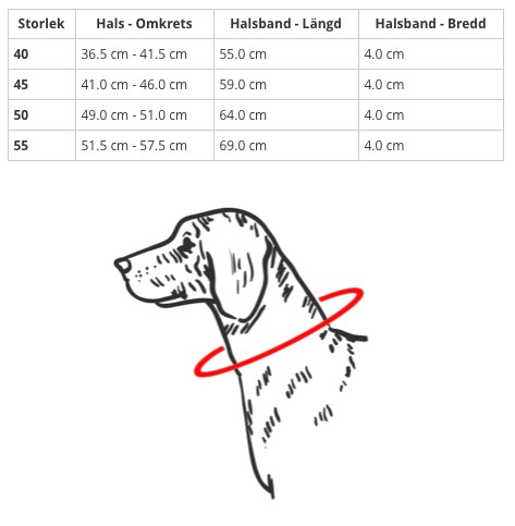 För bästa möjliga anpassning, kontrollera att hundens halsmått passar med halsbandet. För att välja rätt storlek till din hund, lägg på ca 1 - 2 cm på måttet när du mäter.