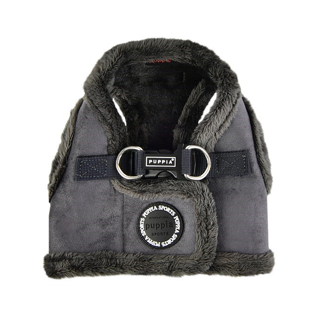 Unna din hund en gosig, varm sele i en snygg grå färg. Puppias fodrade vintersele i jacket-modell har extra vadderade kanter, och är ett snyggt och bekvämt alternativ i vinter, till din fyrbente vän. Materialet på utsidan påminner om mocka, och insidan är härligt luddig.