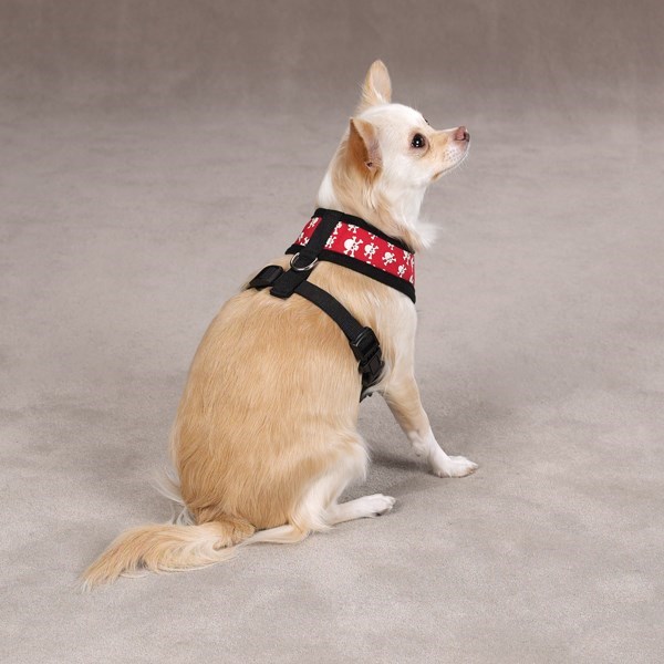 En mycket bekväm och ergonomisk hundsele. Selen har fodrade kanter för att undvika skav. Justerbar bröstrem för perfekt passform. Rejäl D-ring för kopplet. Dödskallarna är självlysande för extra säkerhet under mörka promenader.