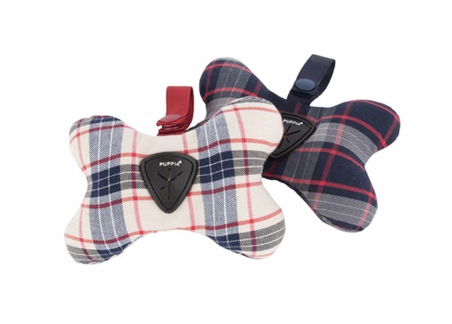 Söt förvaringsväska för hundbajspåsar. Rutigt mönster och dekorerad med band för att fästa i bältet.